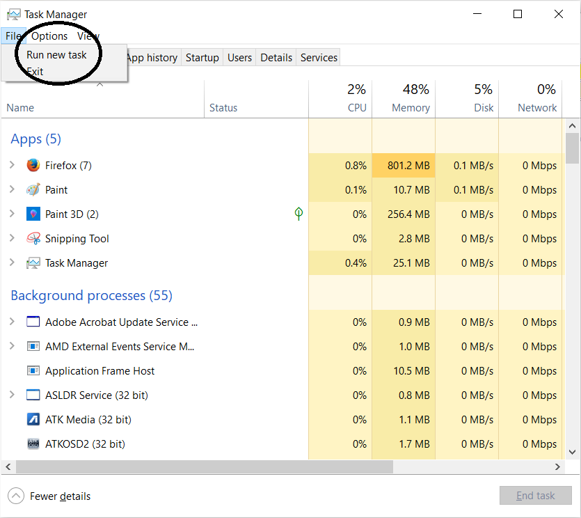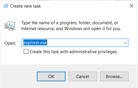 - در پنجره Run، عبارت explorer.exe را تایپ کنید و روی OK کلیک کنید.