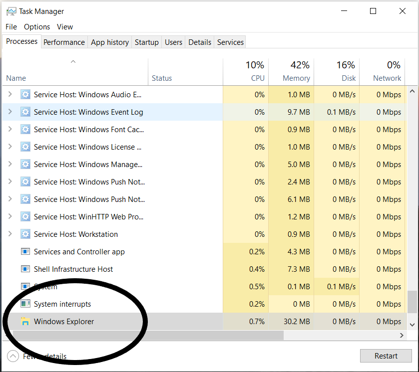 - Windows Explorer را پیدا کنید و روی آن راستکلیک کنید.
