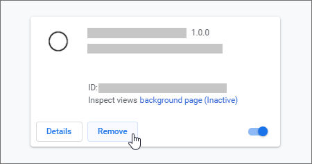 روی دکمه toggle برای غیرفعال کردن و دکمه Remove برای حذف اکستنشن کلیک کنید تا تحریم شکن غیرفعال یا حذف گردد (پیشنهاد میشود حذف گردد)