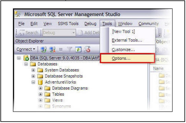 - منو Tools را انتخاب کنید و بر روی Options کلیک کنید