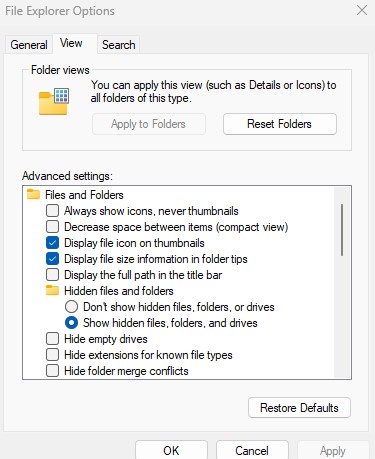 ![تصویری از پنجره Folder Options در ویندوز 11]()