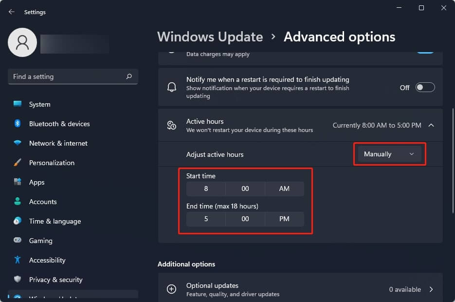 - تنظیم ساعات فعال (Active Hours): با تنظیم ساعات فعال، میتوانید به ویندوز اطلاع دهید که در چه زمانهایی از کامپیوتر خود استفاده میکنید. در این ساعات، ویندوز از دانلود و نصب بهروزرسانیها خودداری میکند تا مزاحمتی برای کار شما ایجاد نشود. برای این کار، به Settings > Windows Update > Advanced options > Active hours بروید.