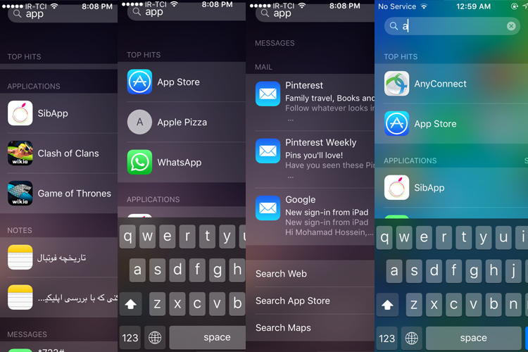در iOS 9 هوشمندی حرف اول را میزند. این موضوع را خصوصا میتوان در نسخه جدید جستجوگر Spotlight مشاهده نمود. حالا شما میتوانید در Spotlight هر چیزی را که میخواهید جستجو نمایید. تغییر ظاهر این قسمت در کنار امکانات جدید آن سبب شده تا با یک نسخهی کامل از این جستجوگر را که شباهت به Google Now در اندروید دارد، شاهد باشیم. در این قسمت وقتی چیزی را جستجو میکنید، جستجوگر به صورت هوشمند بهترین پیشنهادها را به شما نشان میدهد. مثلا میداند که از چه اپلیکیشنی بیشتر استفاده میکنید یا با کدام یک از مخاطبانتان بیشتر در ارتباط هستید یا ایمیل چه افرادی برای شما پراهمیت است. بدین ترتیب نتایج بر اساس تاریخچهی رفتاری شما به صورت هوشمند چیده میشود تا بتوانید نهایت استفاده را از دیوایس هوشمند خود داشته باشید.
