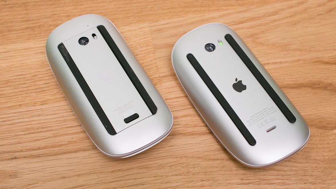 پشت موس نیز با پوشاندن درب باتری و اضافه شدن درگاه شارژ تغییر کرده و ریل های حرکتی پشت دستگاه تغییر کرده و بر روی سطوح با راحتی بیشتری حرکت خواهد کرد. قیمت نسبت به نمونه قبلی 10 دلار افزایش داشته و با قیمتی 79 دلاری به فروش می رسد. نام ماوس جدید Magic Mouse 2 است.