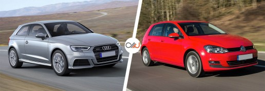 هر دو خودرو بر روی پلت فرم یکسانی که با خودروهای دیگری از گروه فولکسواگن چون سئات لئون، آئودی TT و اشکودا اوکتاویا مشترک است ساختهشدهاند. درنتیجه بسیاری از نقاط قوت آنها هم با یکدیگر یکسان است. کیفیت رانندگی در هر دو خودرو از بهترینهای بازار است. به این معنی که بسیار راحت و مطمئن عمل میکنند. راحتی سواری بهویژه در آئودی به دلیل رینگهای بزرگتر فوقالعاده عالی است و این در حالی است که در مدلهای S-Line اندازهٔ رینگها به 19 اینچ هم افزایش پیدا میکند؛ اما هرچند گلف و A3 از رانندگی باثبات و با امنیتی برخوردارند اما هیچیک به چالاکی مزدا 3 یا ب ام و سری 1 احساس نمیشوند. البته مدلهای اسپرت GTI، R، S3 و RS3 از این مسئله مستثنی هستند چراکه سرعت و چالاکی بینظیری را ارائه میکنند. گلف GTI بازیگوش، متعادل و سرگرمکننده است درحالیکه گلف R هم همین ویژگیها را به همراه سرعت و قدرت بیشتری ارائه میکند.